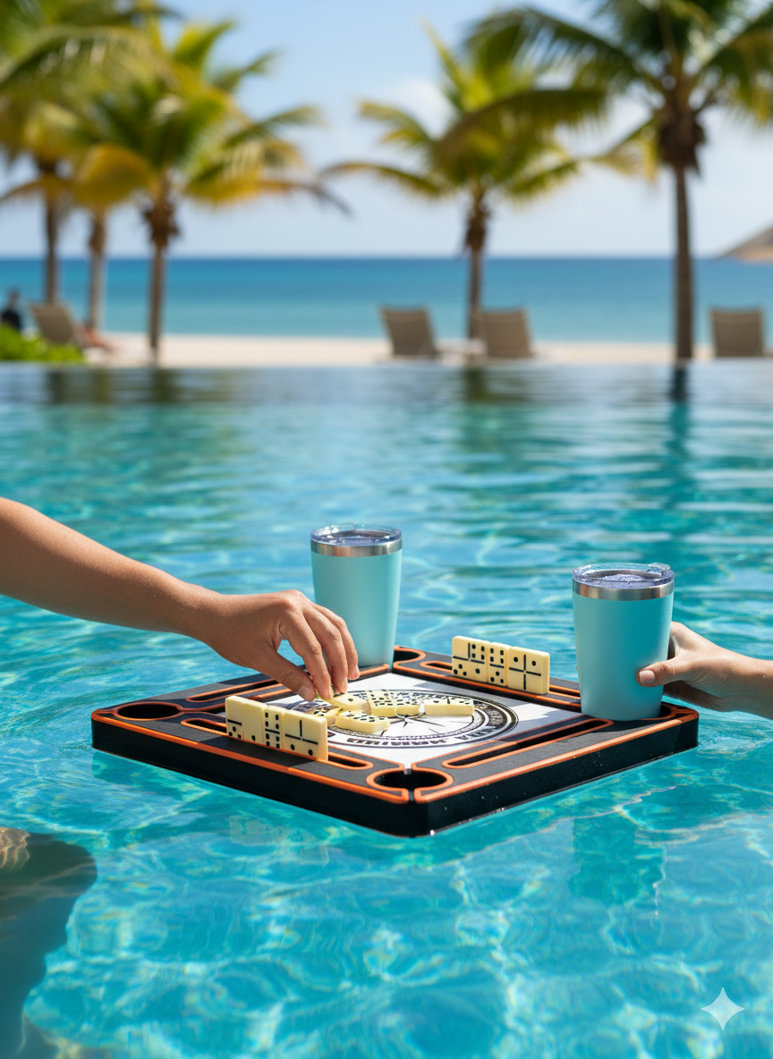 Domino in the water? Only in Puerto Rico! Our floating table takes a family tradition to a whole new level.