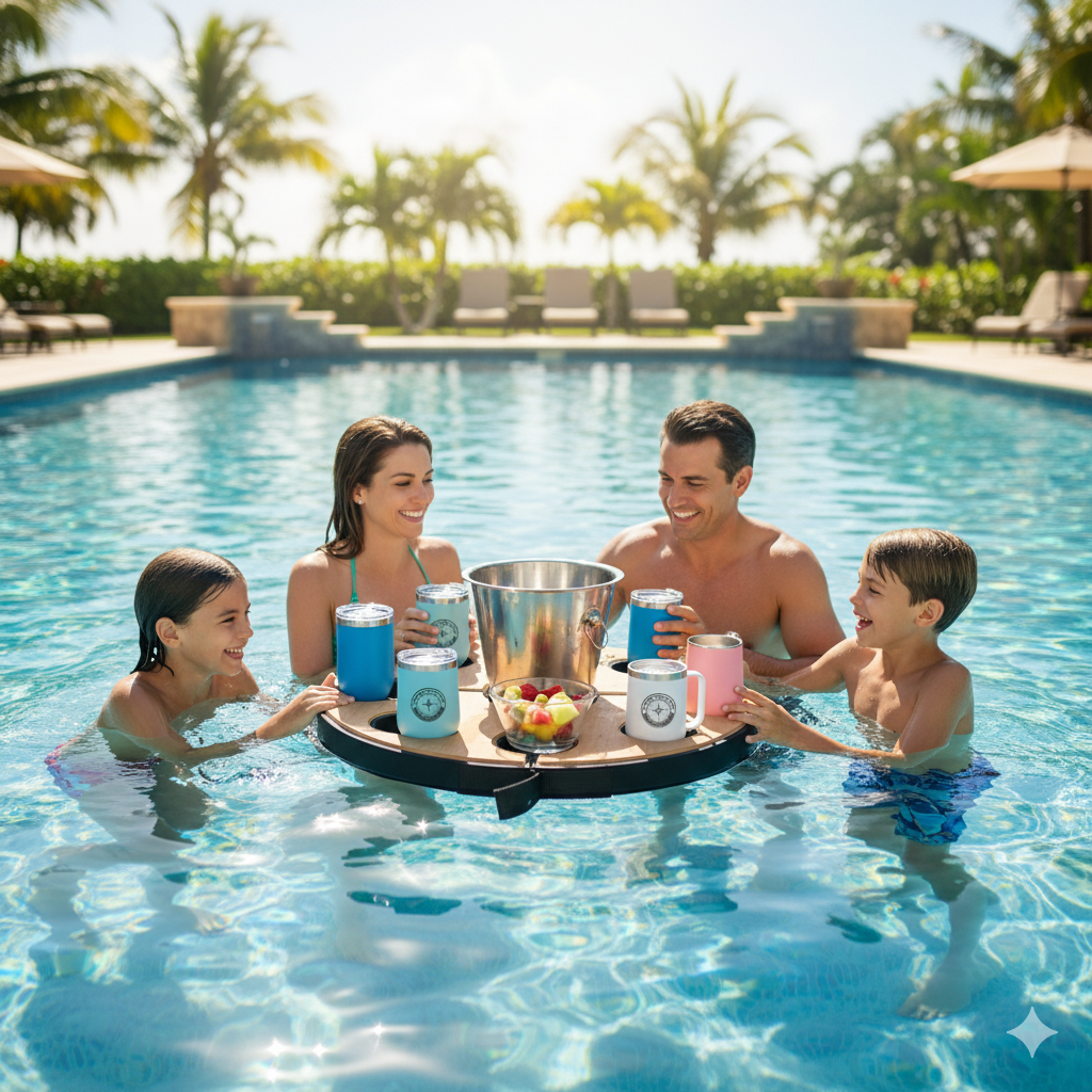 Take your beach and pool days to the next level with our floating tables and insulated tumblers. The floating tables keep your drinks, snacks, and games secure, creating the perfect setup for family and friends. Pair them with our double-wall stainless steel tumblers, designed to maintain the ideal temperature—ice-cold or piping hot—for hours. Durable, stable, and built for marine use, they’re your ultimate companions for fun under the sun.