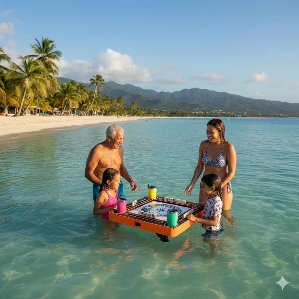 Domino in the water? Only in Puerto Rico! Our floating table takes a family tradition to a whole new level.