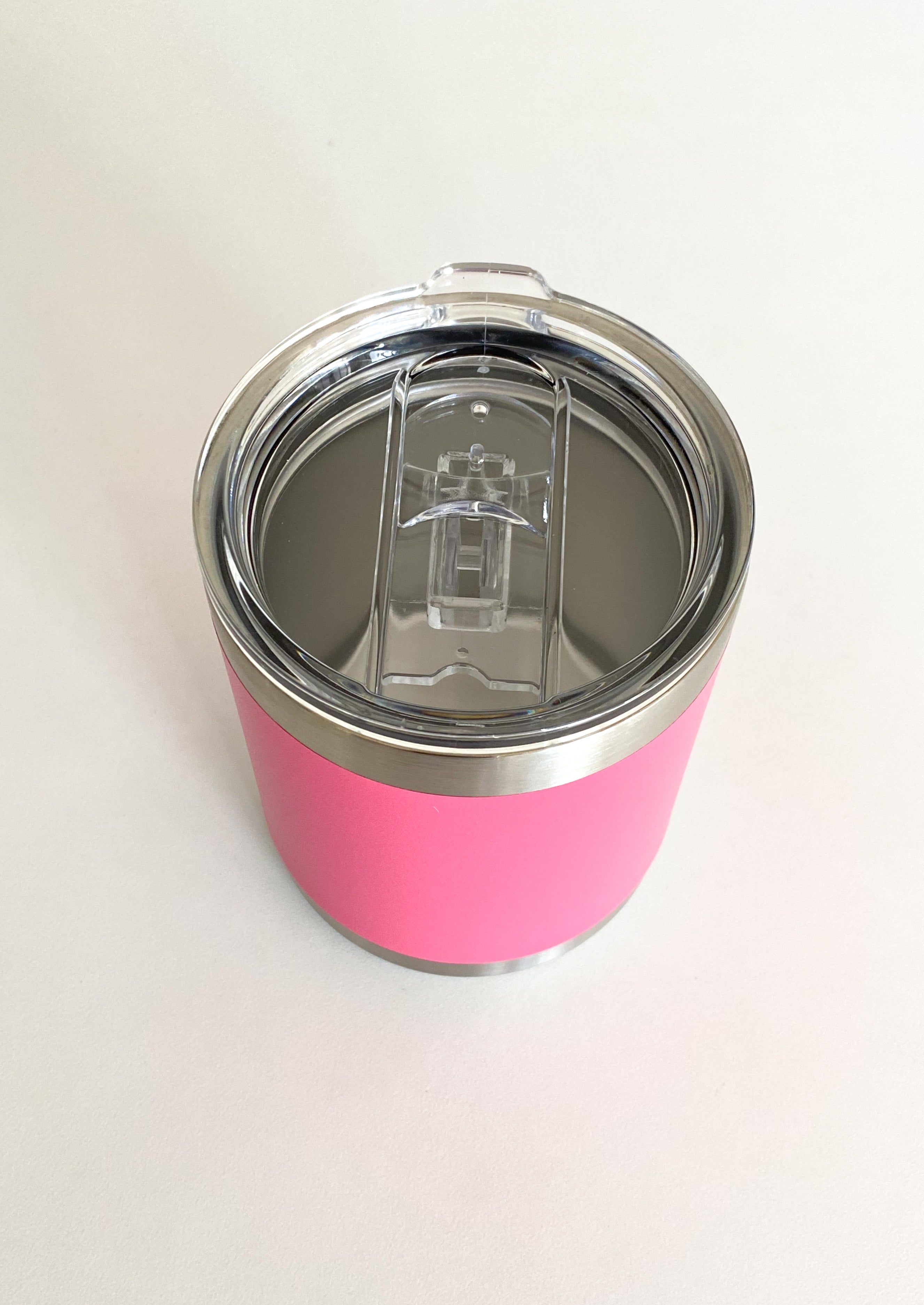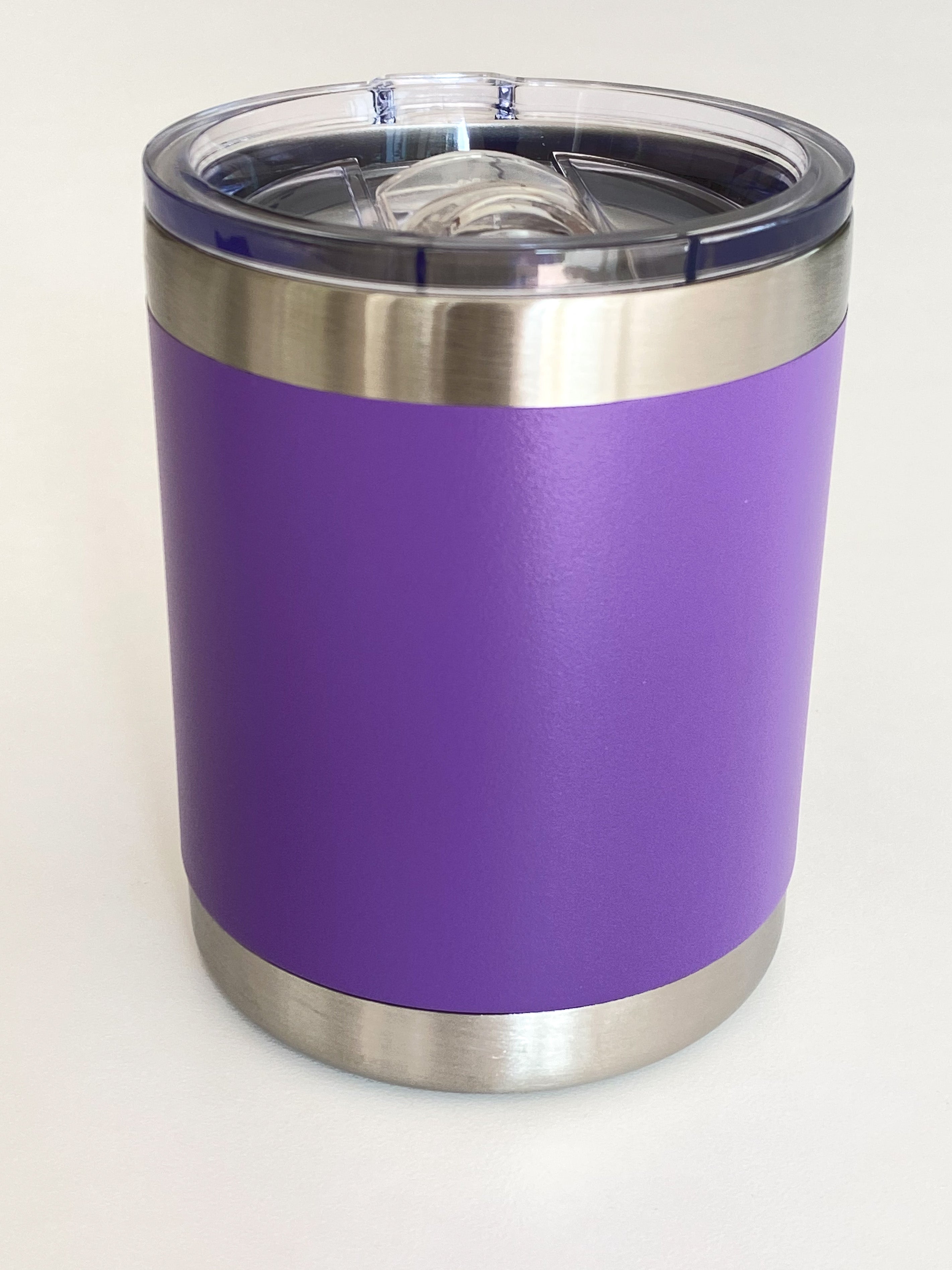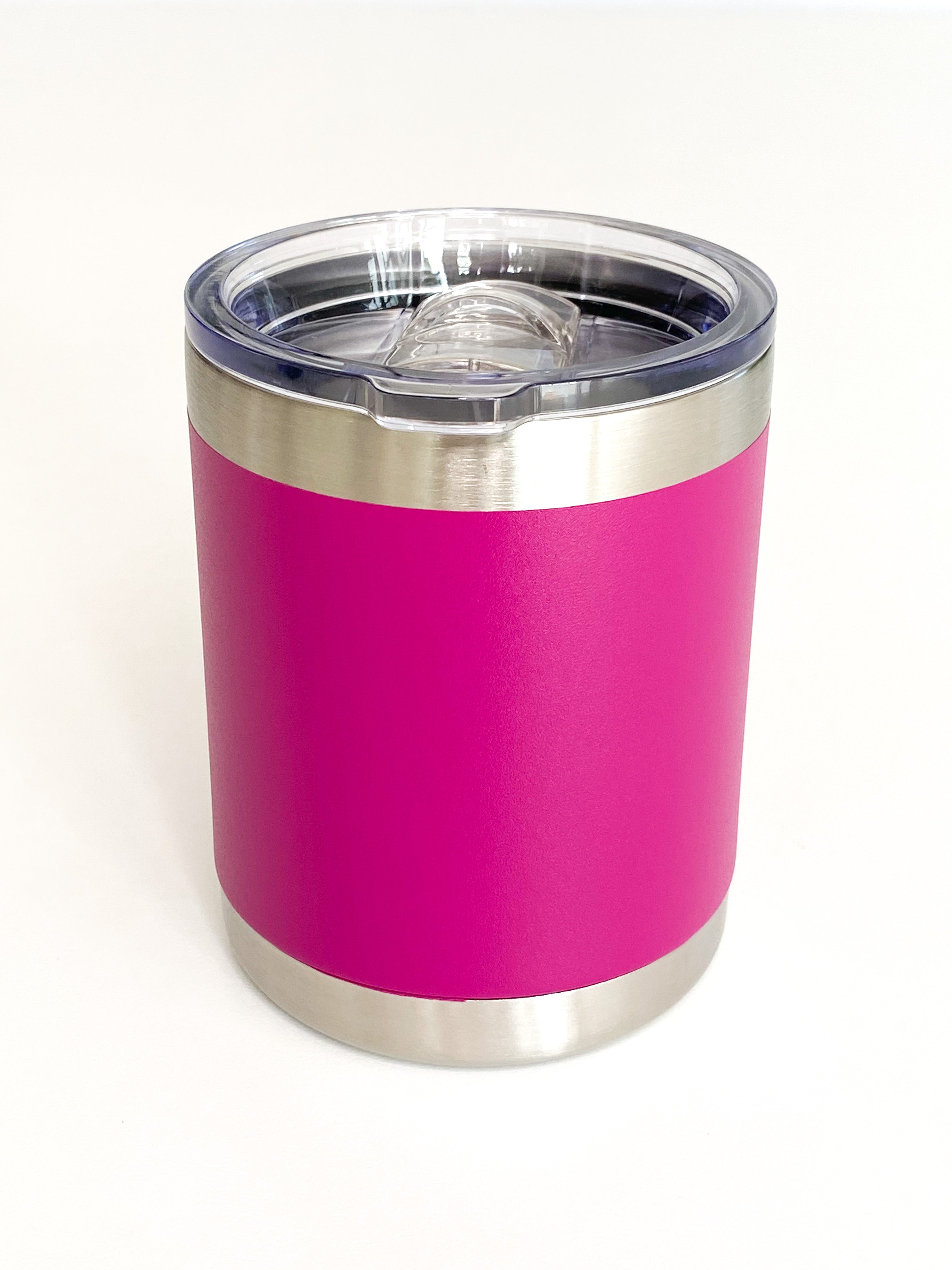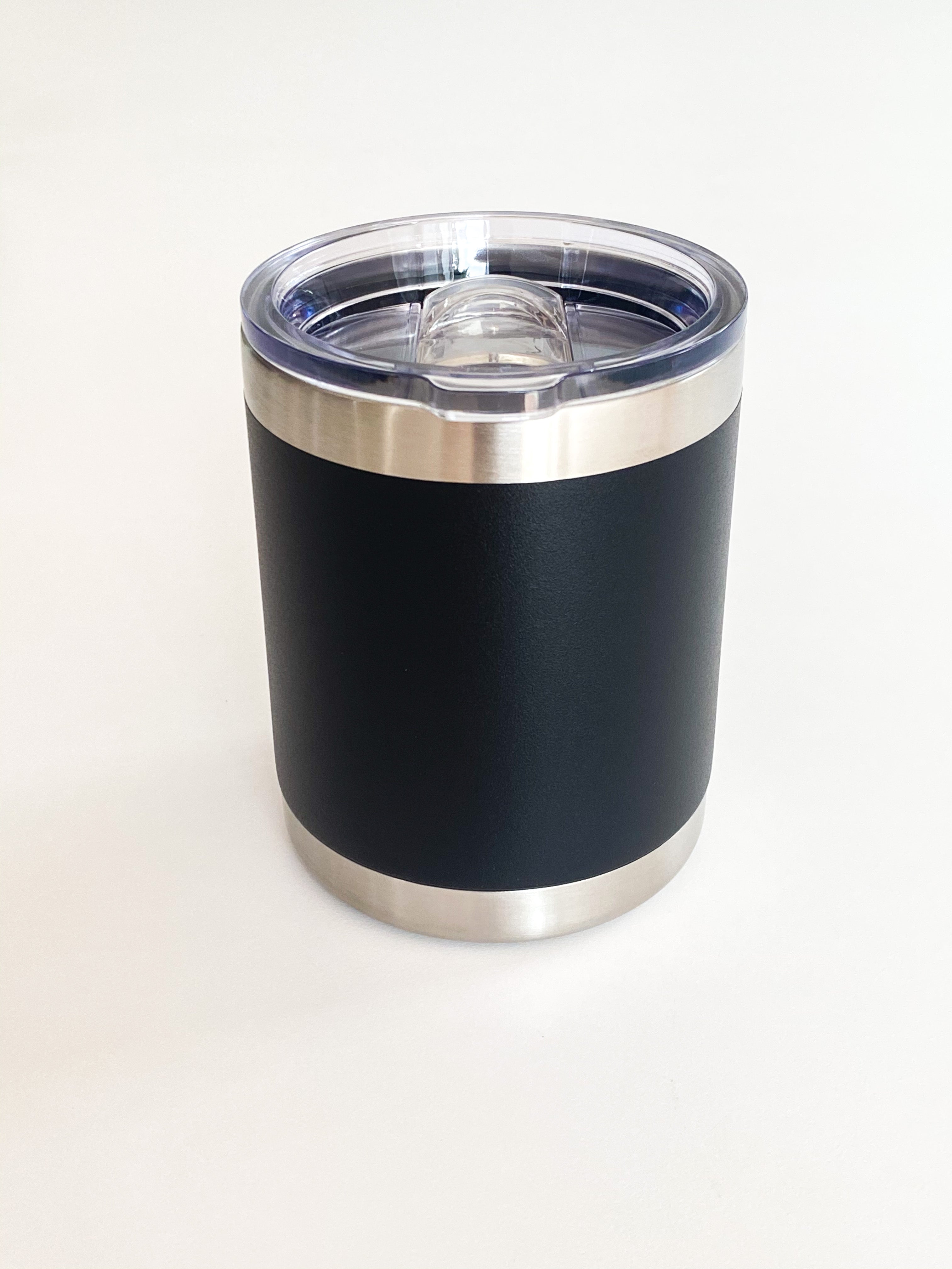 Double-wall stainless steel. Keeps drinks cold or hot for hours with a sweat-free grip.
